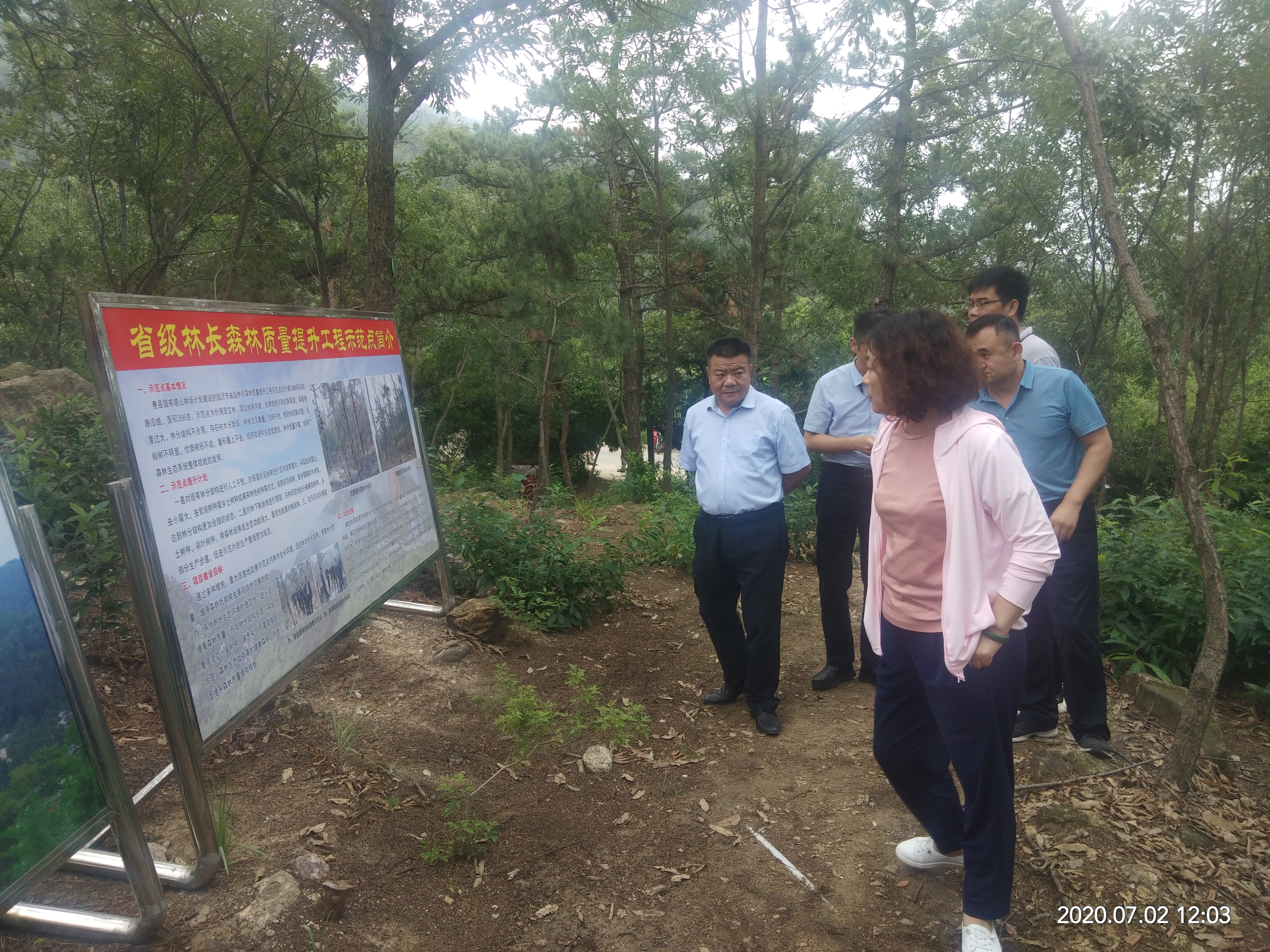 7月1日—3日,省自然资源厅国土空间生态修复处副处长、三级调研员靳萍,四级调研员马晋等一行4人来我市调研国土绿化工作。市林业局党组书记、局长唐音波,党组成员、副局长李洪亮,二级调研员申为宝,市林业局相关科室负责人参加调研,蒙阴县政府副县长王锦栋、费县一中党委书记王献德、兰山区委副书记、组织部长李春仲和县区林业主管部门主要负责人先后陪同。