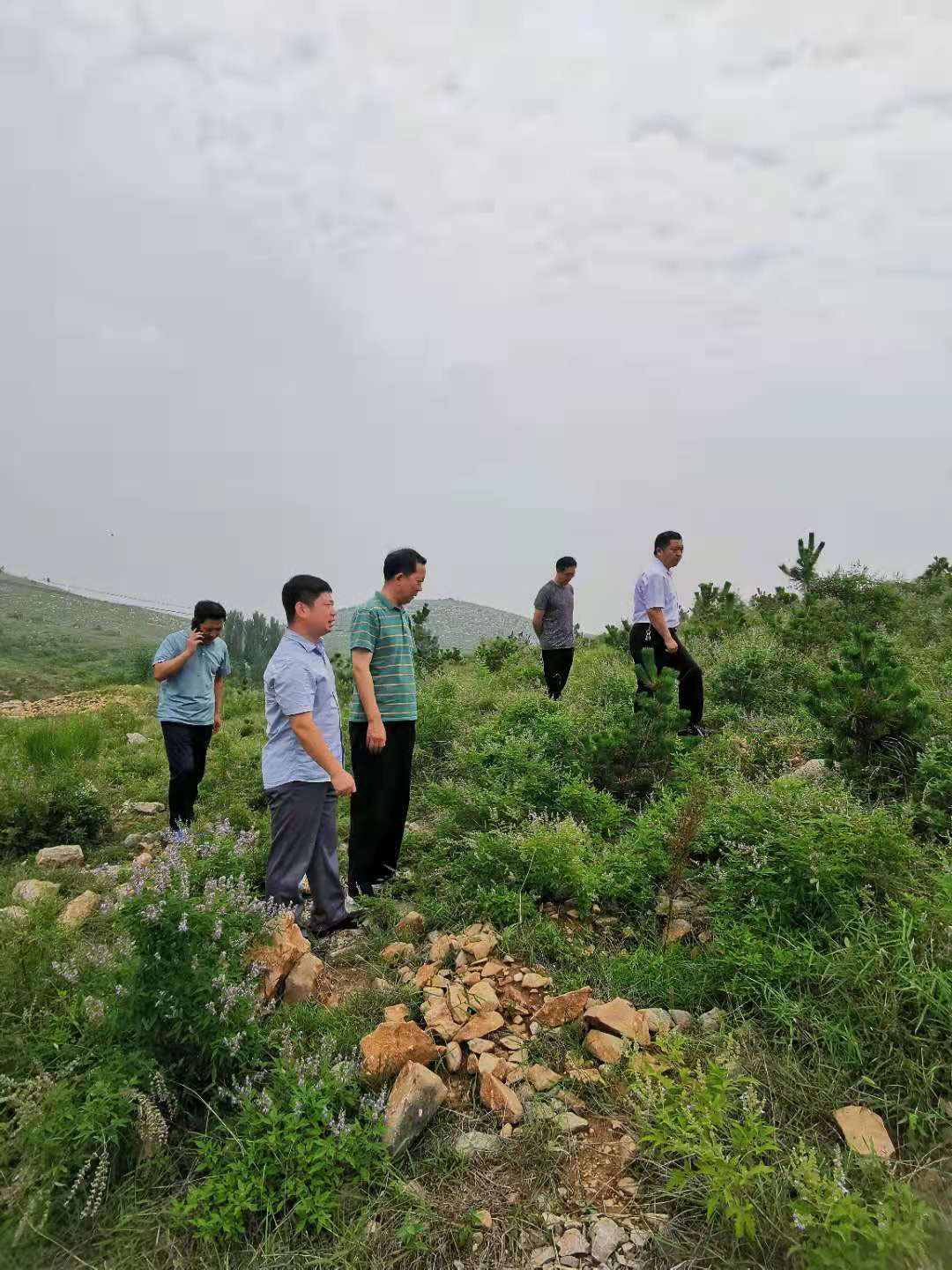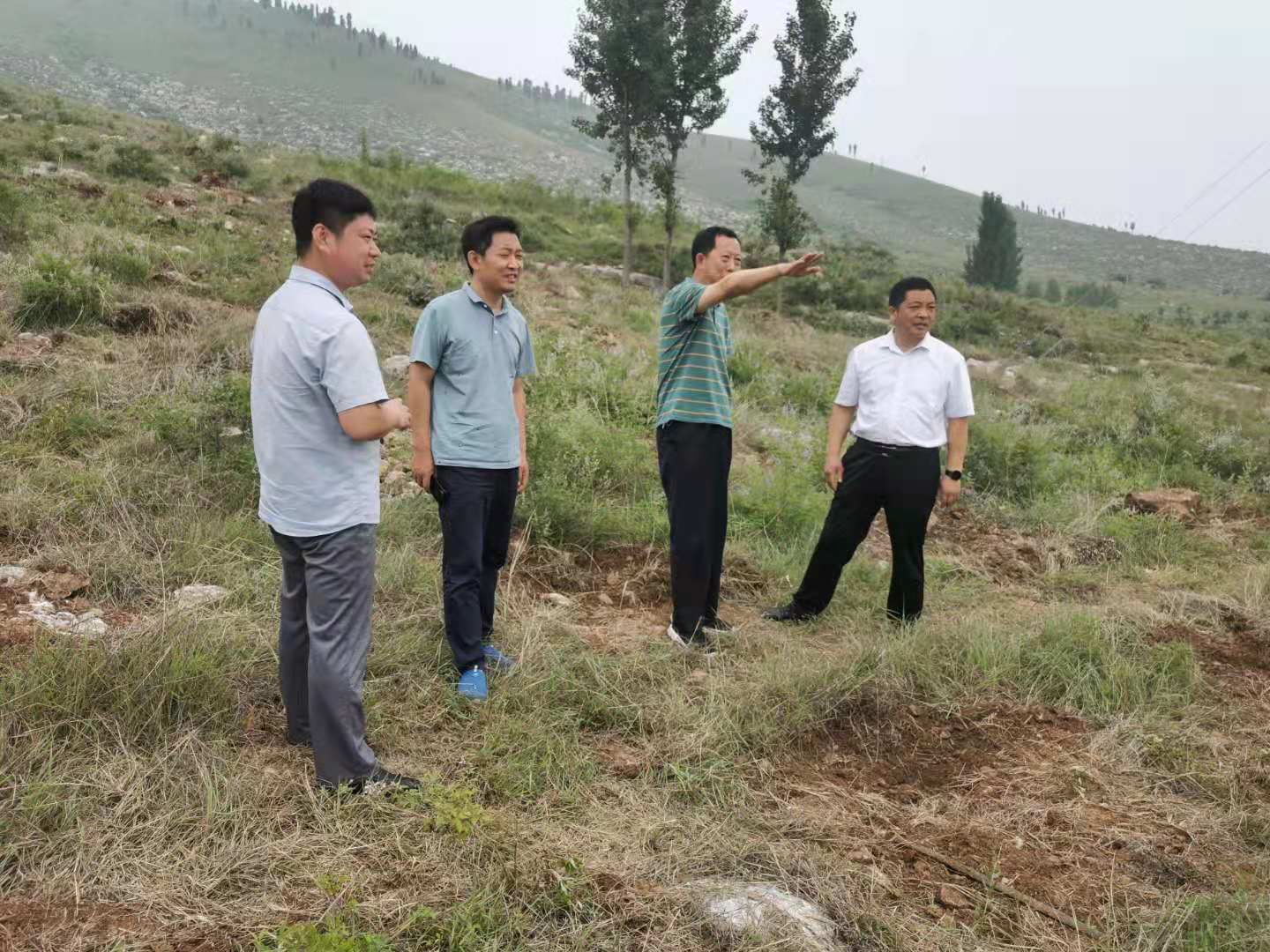 陈磊一行先后来到平邑街道盛泉村、才家庄雨季造林点进行调研。在盛泉村,一行人察看了去年的雨季造林工程现场,并对今年的雨季造林工作提出要求,指出荒山造林难度大、成活率低,一定要坚持高标准规划设计,强化栽种技术指导,确保苗木成活率。要合理安排工期,抓住雨季造林有利时机抢栽造林,稳步推进施工进度。