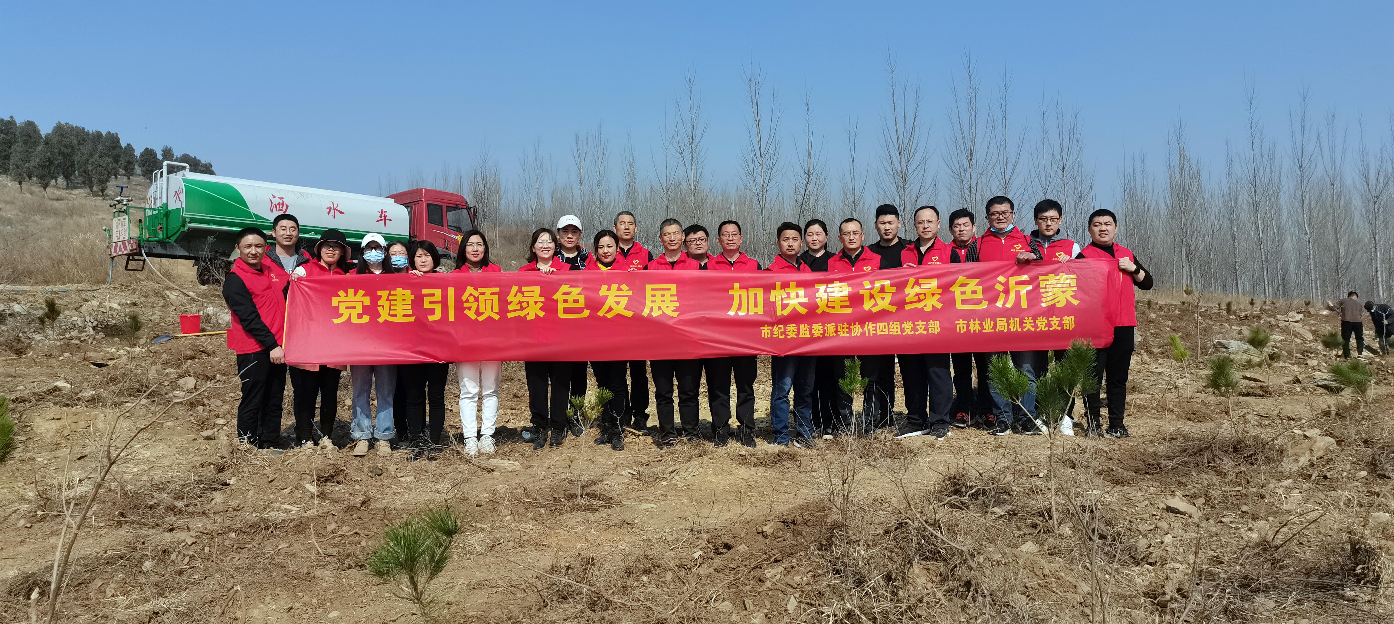 阳春三月,春风送暖。为贯彻绿色发展理念,建设生态美丽临沂,使广大党员干部成为生态文明建设的重要参与者、贡献者和引领者,提高广大干部职工思想认识,积极践行生态卫士神圣职责,在第44个植树节来临之际,3月9日上午,市纪委监委派驻协作四组党支部、市林业局机关党支部在兰陵县联合开展“党建引领绿色发展,加快建设绿色沂蒙”义务植树活动。市纪委监委派驻第七纪检监察组副组长薄法余,市林业局党组成员、副局长周茂永及两支部共30余人参加活动。