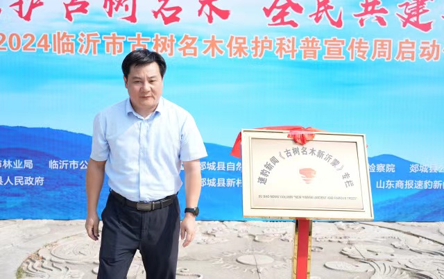 郯城县委常委、常务副县长龙希锋讲话强调:郯城县积极落实绿色发展理念,始终将林业发展特别是古树名木保护工作摆在重要位置,形成了林长跨省协作机制、“林长+检察长”保护工作机制等一系列先进经验,全县上下对古树名木保护工作高度认同、步调一致,取得了可喜成绩。将以此次活动为契机,切实履行好资源保护职责,努力提升人民群众生态文明意识,营造“人人关心古树名木、人人保护古树名木”的良好氛围,以实际行动筑牢生态安全的铜墙铁壁,为市县两级生态文明建设作出新的更大贡献!