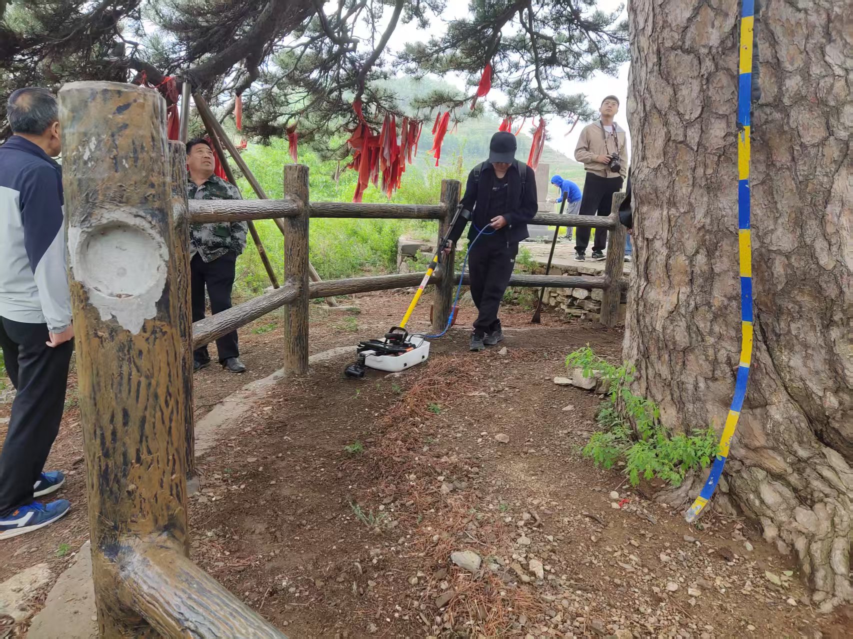 工作组马不停蹄,先后奔赴蒙阴、兰陵等6个县区,对目标古树展开全方位勘查。为确保调研的科学性与全面性,技术团队采用了一系列先进技术与传统方法相结合的手段。通过无人机巡航,从高空视角对古树及其周边环境进行整体观察,获取宏观信息;运用TRU根系雷达扫描技术,精准探测古树根系分布情况,了解其地下生长状态;采集土壤样本,以便后续在实验室进行详细分析,评估土壤肥力、酸碱度等指标,判断土壤环境是否适宜古树生长。同时,技术人员还进行了细致的人工巡查,近距离查看古树的生长状况、树体结构是否稳定、是否存在病虫害迹象等。