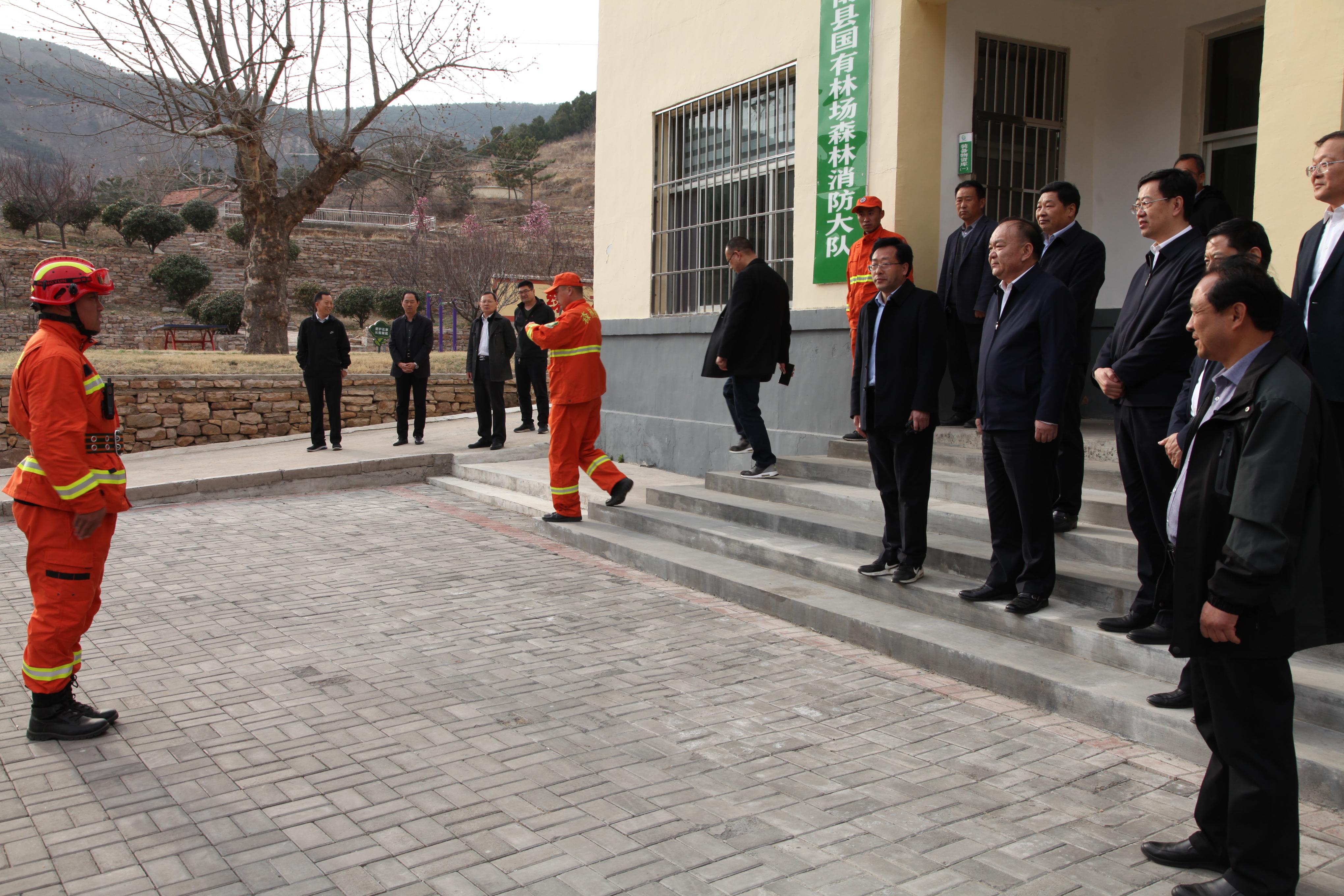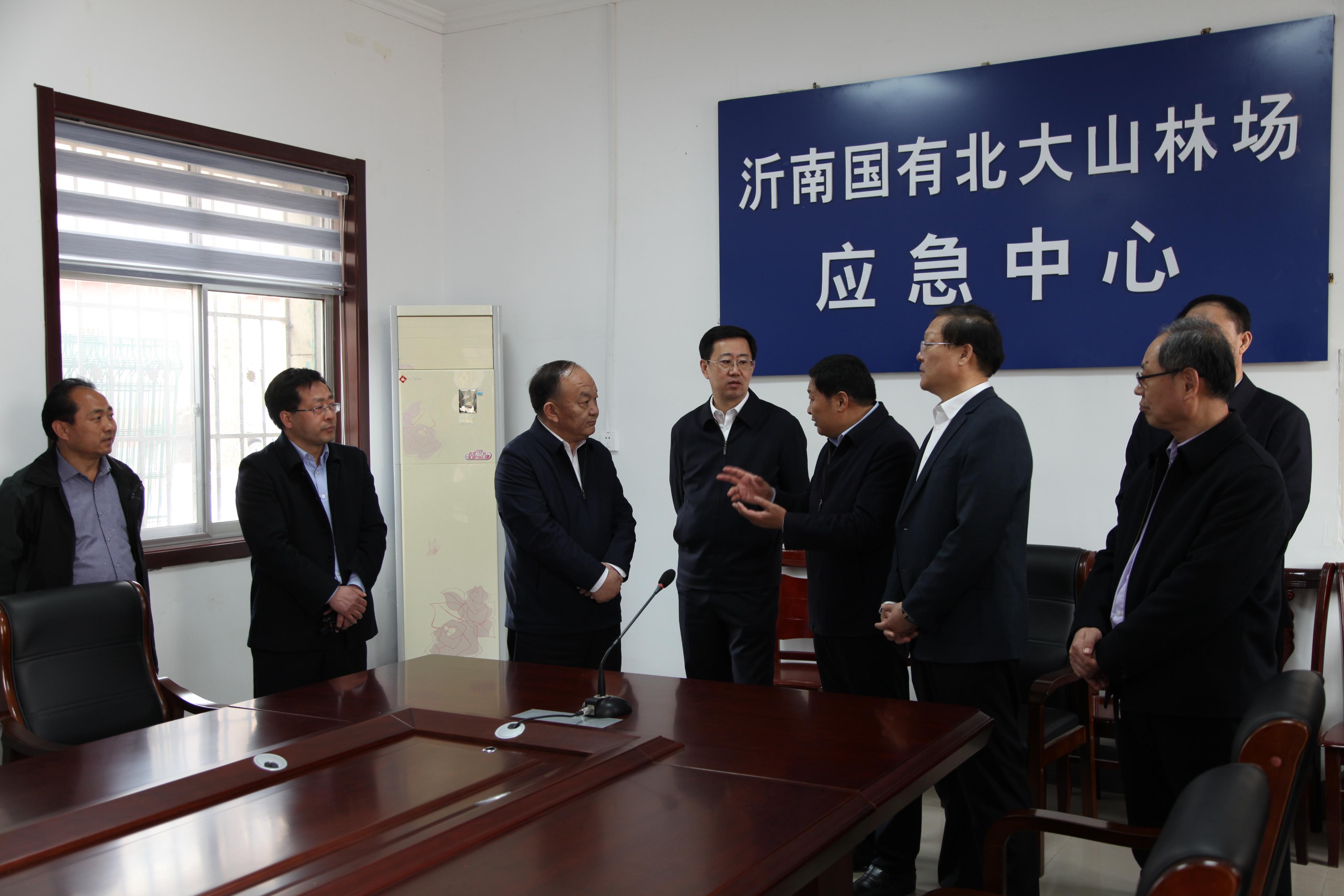 在沂南县国有北大山林场,宇向东一行先后查看了防火物资储备、森林消防队伍管理训练、林场人员值班值守、林火视频监控和卫星热点监测系统运行等情况,现场听取了市、县林业主管部门及国有林场有关工作情况汇报。