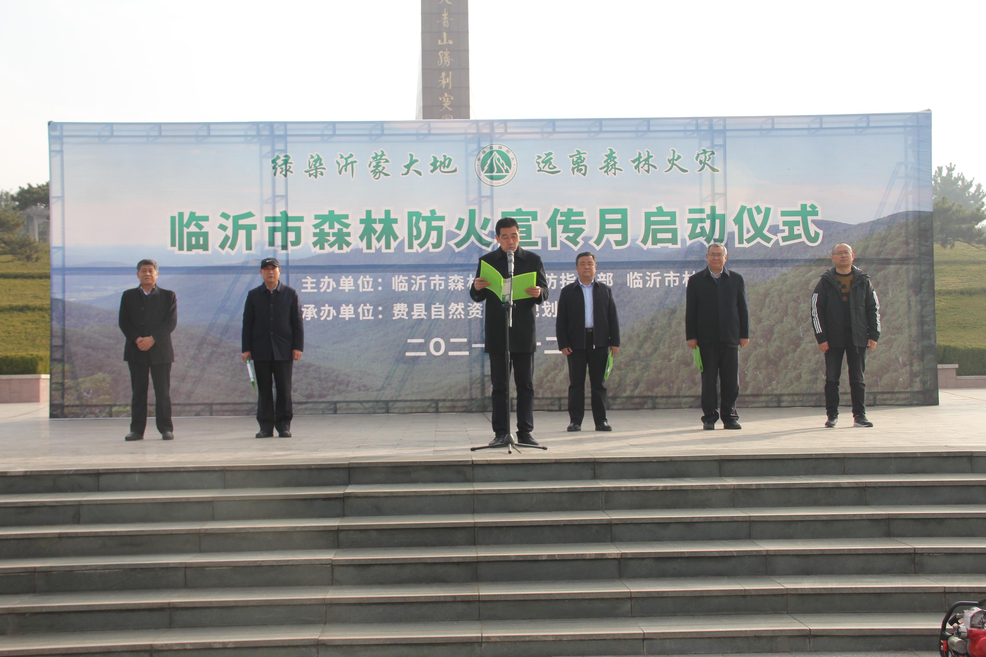 12月10日,临沂市森林防火宣传月启动仪式在费县举行。市公安局森林警察支队政委刘路明,市应急管理局党委委员、市应急保障服务中心主任陈继军,市应急管理局四级调研员王守峰,市林业局党组成员、副局长张玉连,市森林和草原防火服务中心主任袁春令,费县县委常委、副县长孔德阳;各县区林业主管部门分管负责同志、业务科站长,费县自然资源局、国有林场、防灭火巡查员代表以及来自银座天蒙景区和费县志愿者代表等200余人参加了启动仪式。