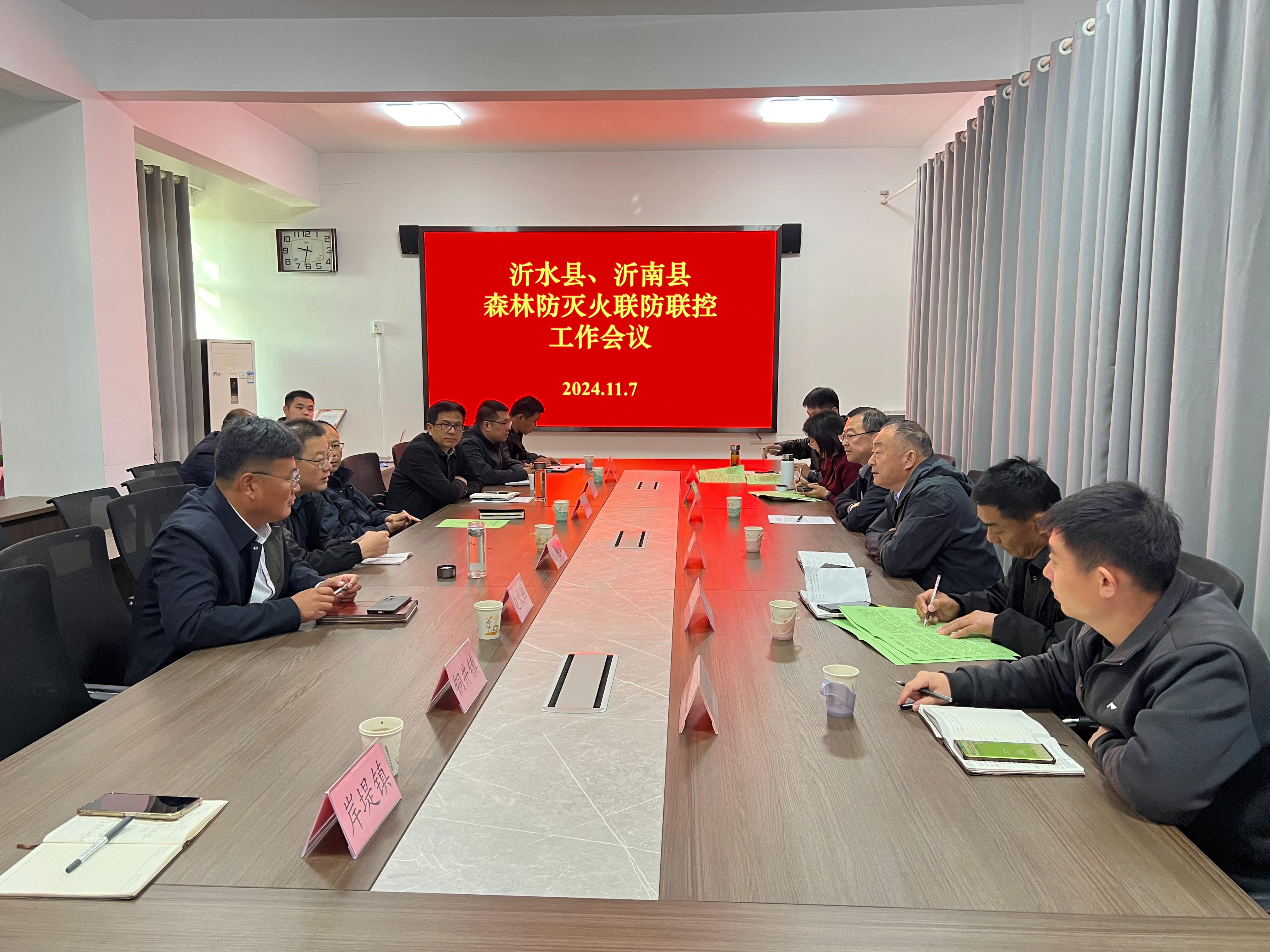 为进一步加强沂水、沂南两县森林资源保护工作,增强相邻乡镇、林场之间森林防火协作配合能力,强化信息沟通、火源管理、人员管控等工作,提升区域综合防控水平。11月7日,沂水县自然资源和规划局、沂南县自然资源和规划局、应急管理局组织6个乡镇、2处国有林场有关负责同志在沂南县铜井镇召开森林防火联防联控工作会议。