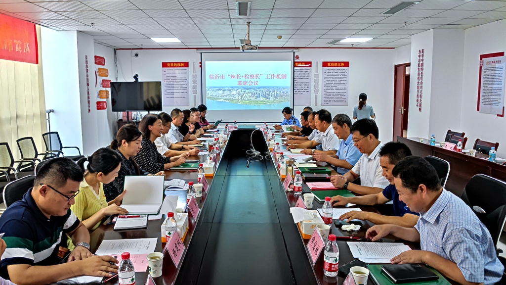 8月12日上午,临沂市“林长+检察长”工作机制联席会议在河东区召开,深入贯彻落实省检察院、省林长办《关于建立“林长+检察长”工作机制的意见》,交流汇报前期工作情况,研究谋划下步工作安排,进一步推动我市“林长+检察长”工作机制有名有实、走在前列。市检察院副检察长、党组成员张玉红出席会议并讲话,市林业局党组书记、局长、市林长办主任张明利主持会议。市林业局党组成员、副局长、市林长办副主任陈磊,河东区委副书记吕凤龙,河东区政府副区长张选出席会议。