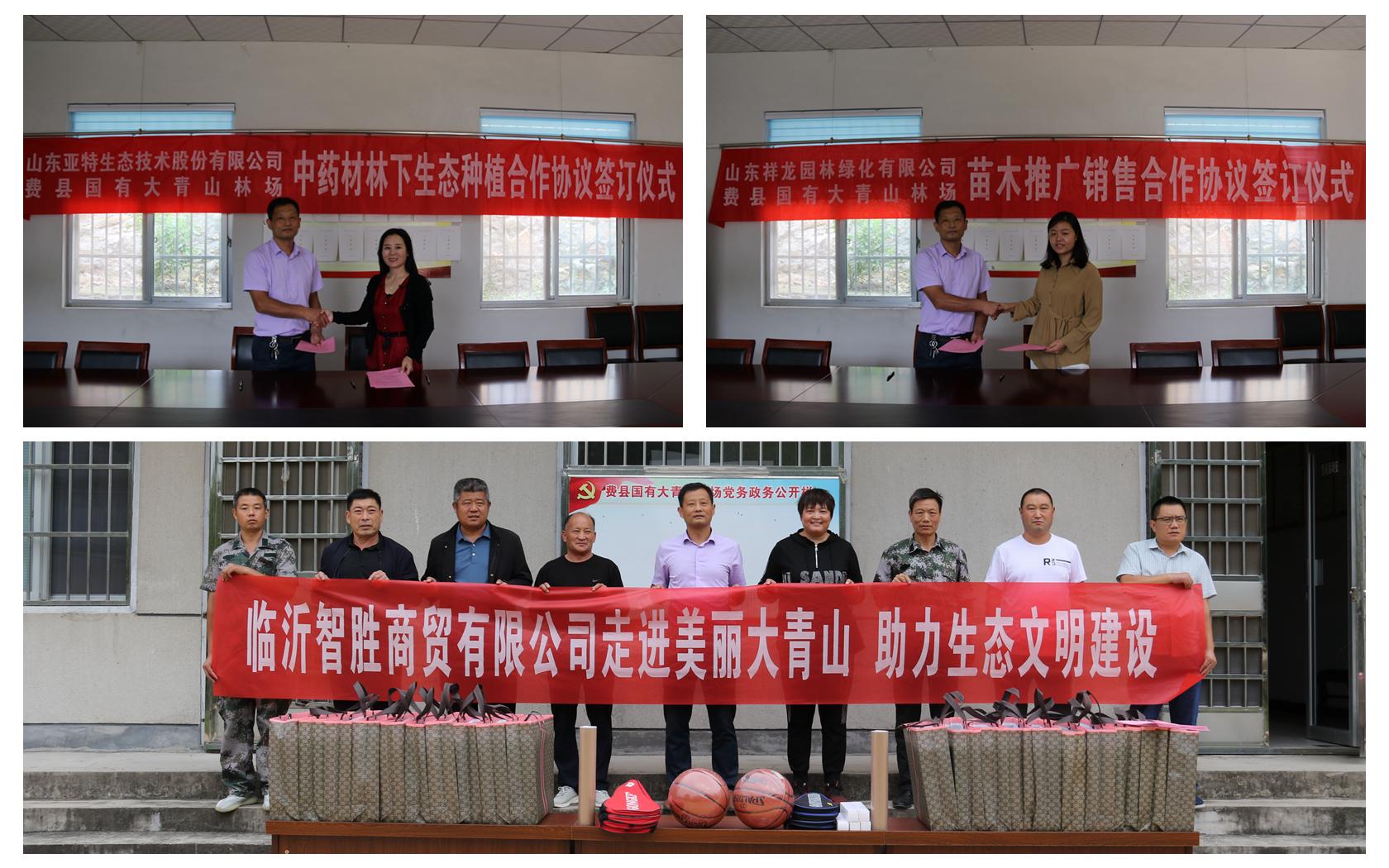 巡林结束后,举行了项目合作协议签订和爱心企业助力林场建设活动,大青山林场同山东亚特生态技术股份有限公司签订林下中药材生态种植合作协议,与山东祥龙园林绿化有限公司签订苗木推广销售合作协议,山东弘正方圆建设集团有限公司和临沂智胜商贸有限公司向林场赠送了生活用品和运动器材。