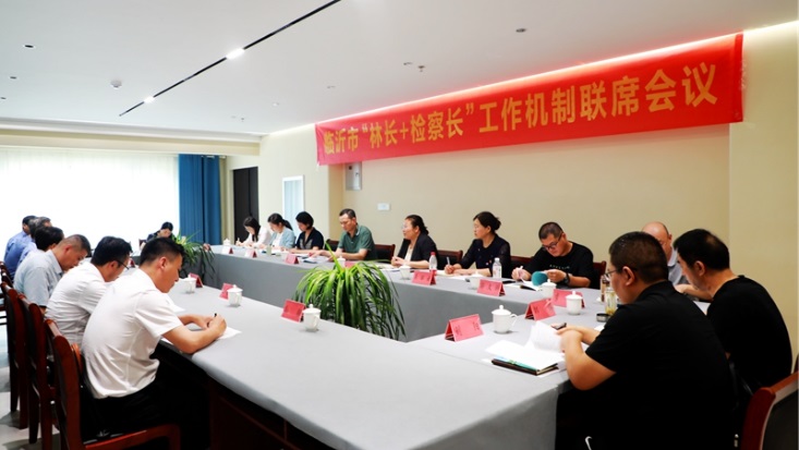 6月27日上午,临沂市“林长+检察长”工作机制联席会议在莒南县召开,深入贯彻全市林业工作会议精神,交流前期工作情况,会商下步任务安排,推动协作机制不断走深走实。市检察院三级高级检察官曹卫军,市林业局副局长、市林长办副主任李秀,莒南县委常委、副县长刘振超出席会议。市检察院有关部室、市林业局相关科室负责同志,以及莒南县检察院、自然资源和规划局主要负责同志等参加会议。